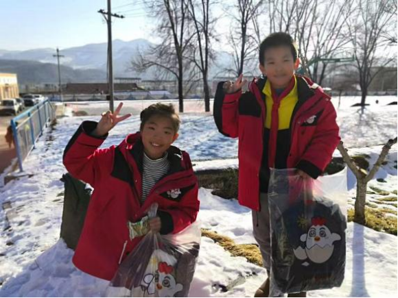 (甘肃武威天祝|收到暖衣的小男孩挥着气球致谢)